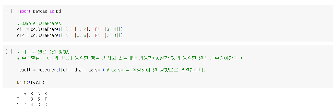 - 기본적으로 axis=0이 설정되어 행 방향으로 연결된다.